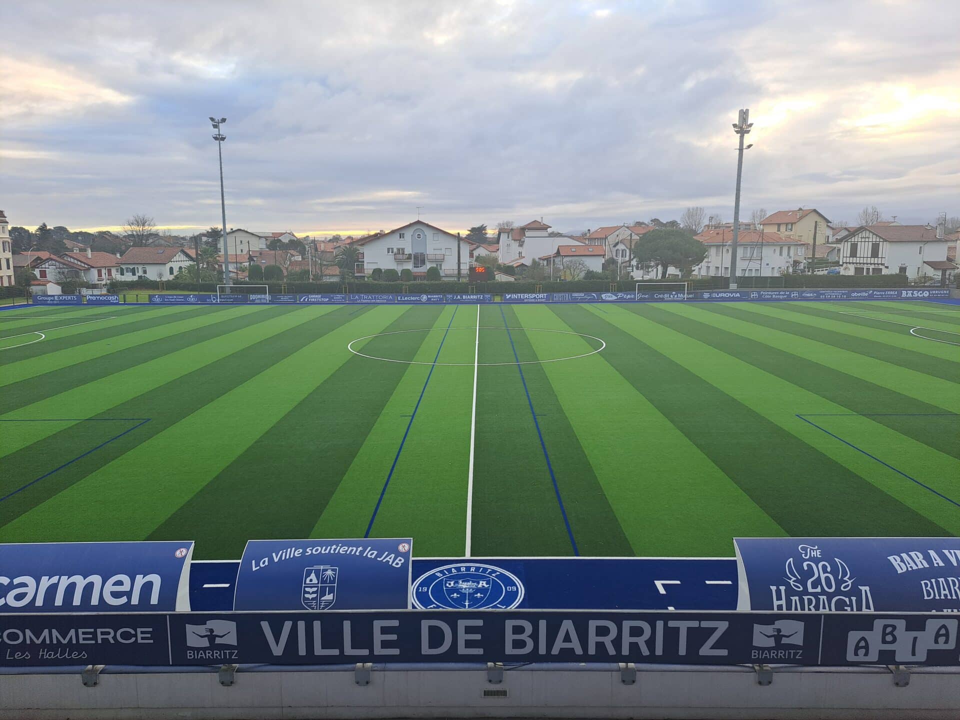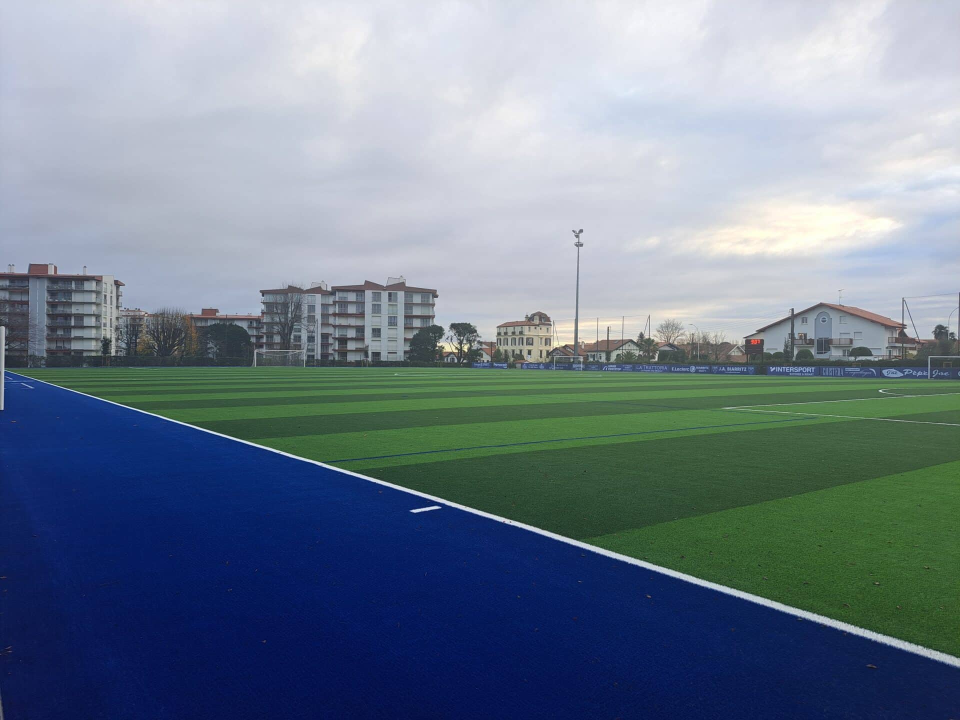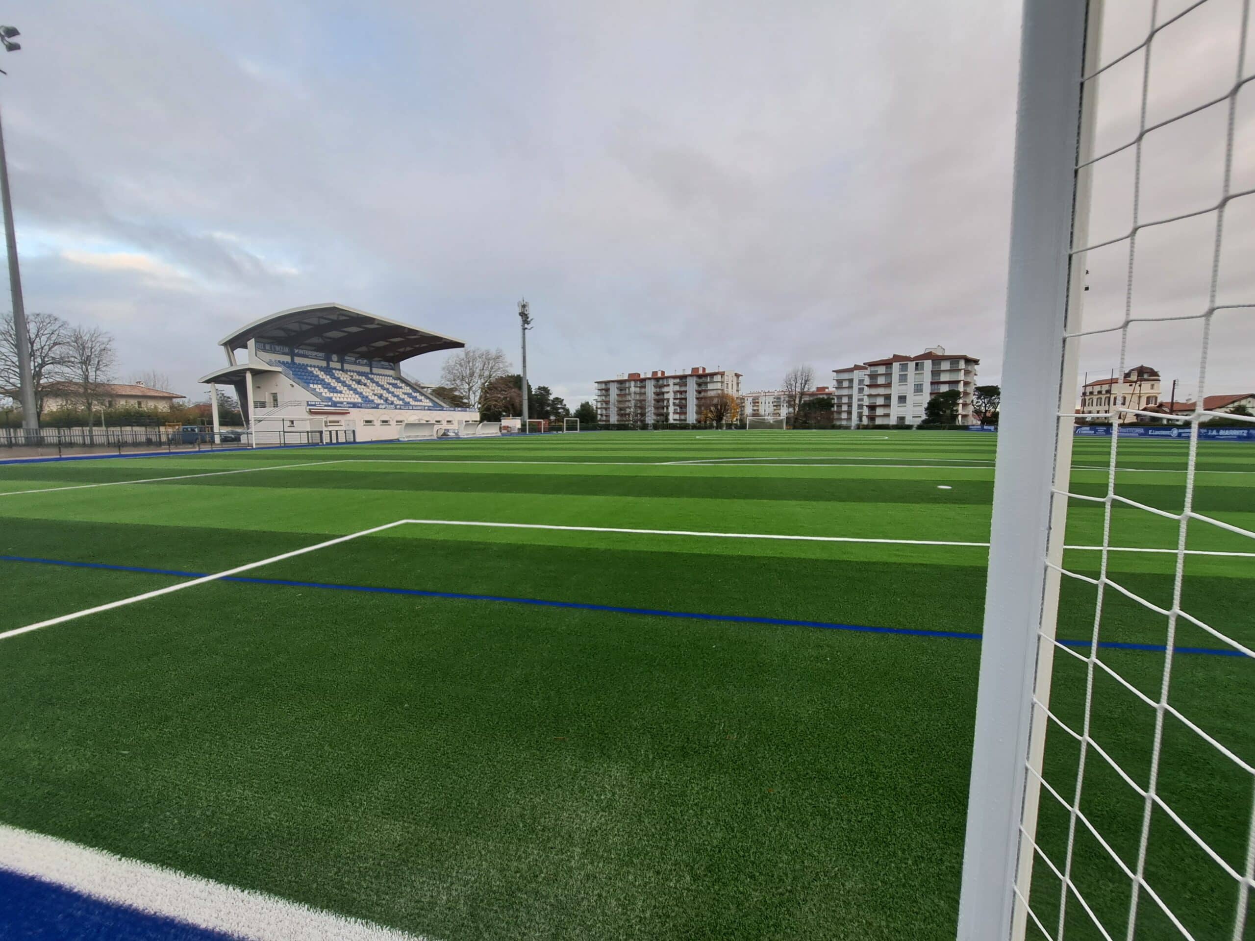 La Ville de Biarritz a souhaité transformer un terrain naturel en terrain synthétique afin de disposer d’un espace d’entraînement praticable toute l’année, quelles que soient les conditions climatiques.
