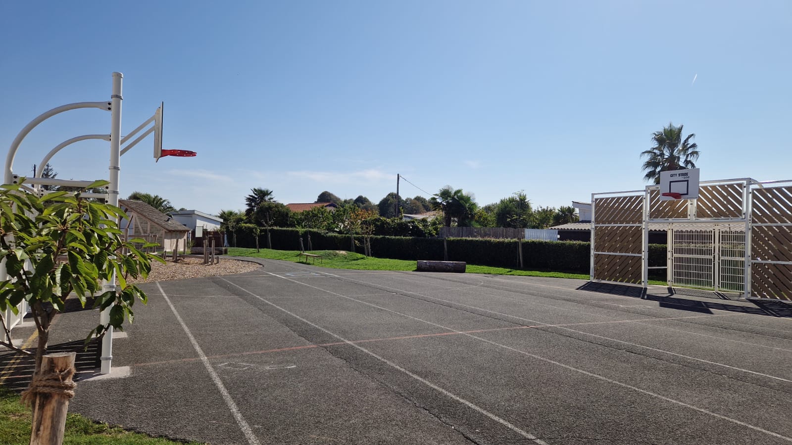 L’objectif principal était de transformer une cour minérale en un espace végétalisé, agréable et durable, tout en créant des zones ludiques adaptées aux enfants. Les travaux ont intégré la plantation d’espaces verts pour ramener la nature au cœur de l’école, mais aussi la pose de structures sportives et de jeux favorisant la diversité des activités.